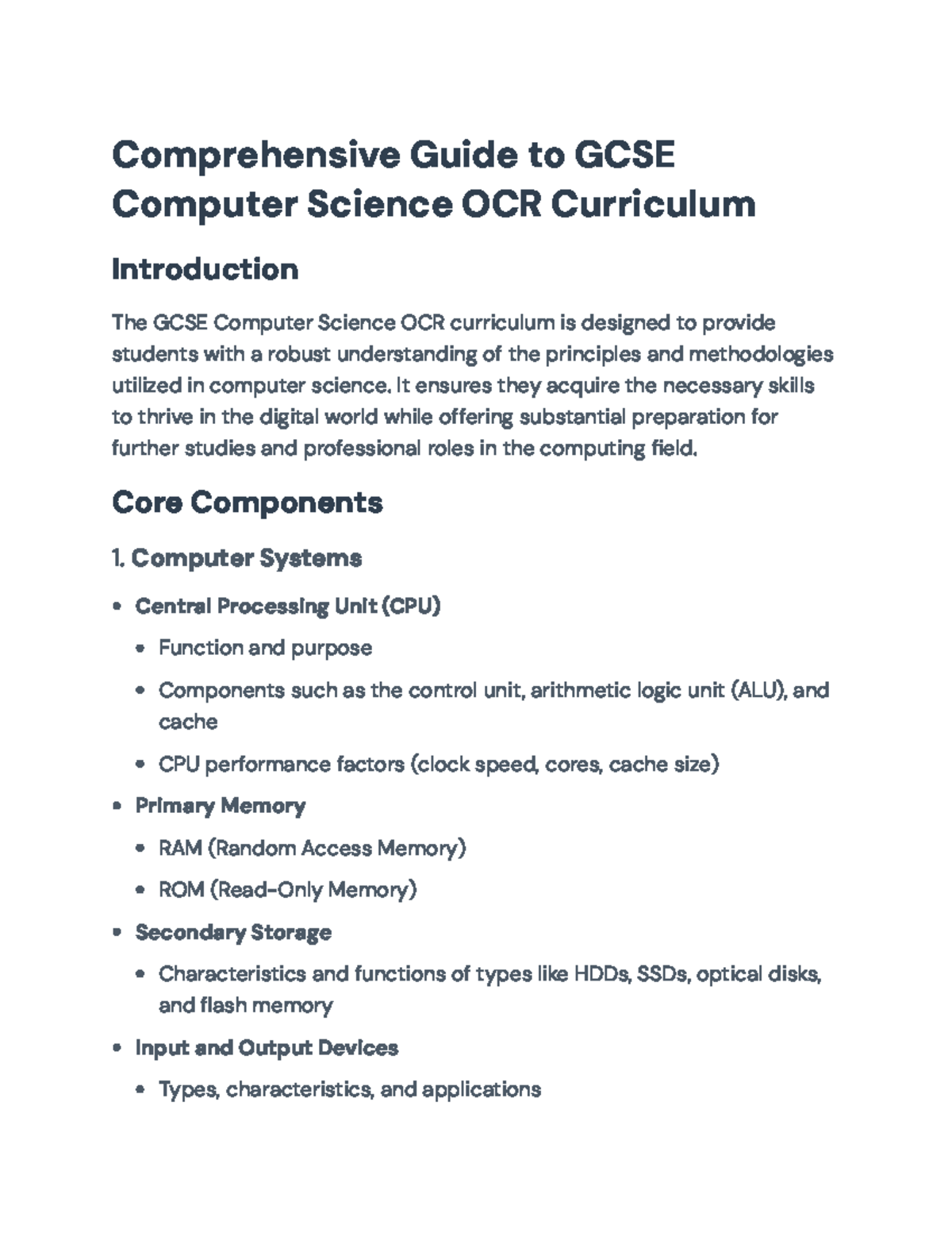 GCSE Computing Revision Notes - OCR Spec Overview - Studocu