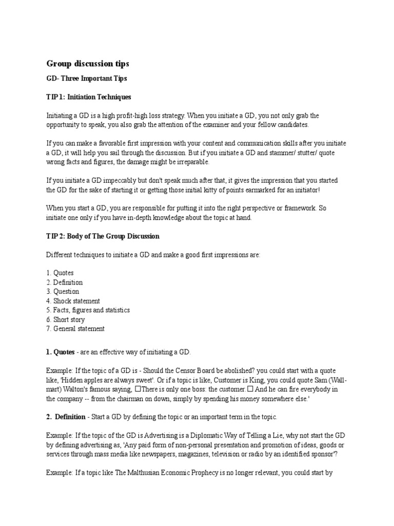 Group Discussion Tips | PDF