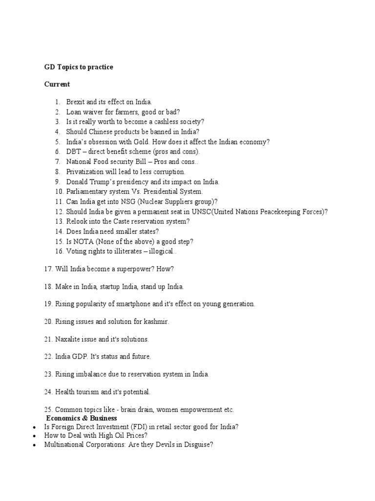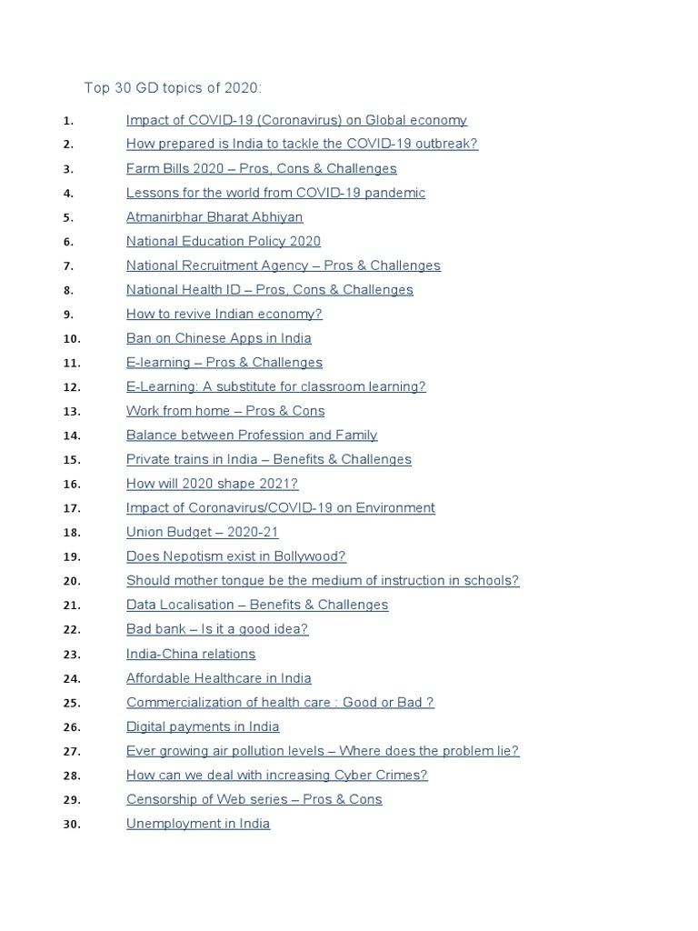 Top 30 Group Discussion Topics 2020 | PDF | Economy Of India ...