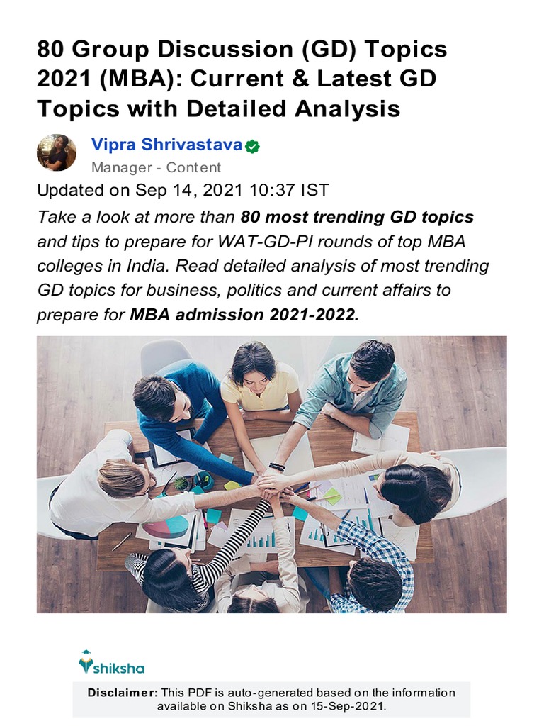 100 Sample Group Discussion Topics For MBA Admissions Covering Current ...