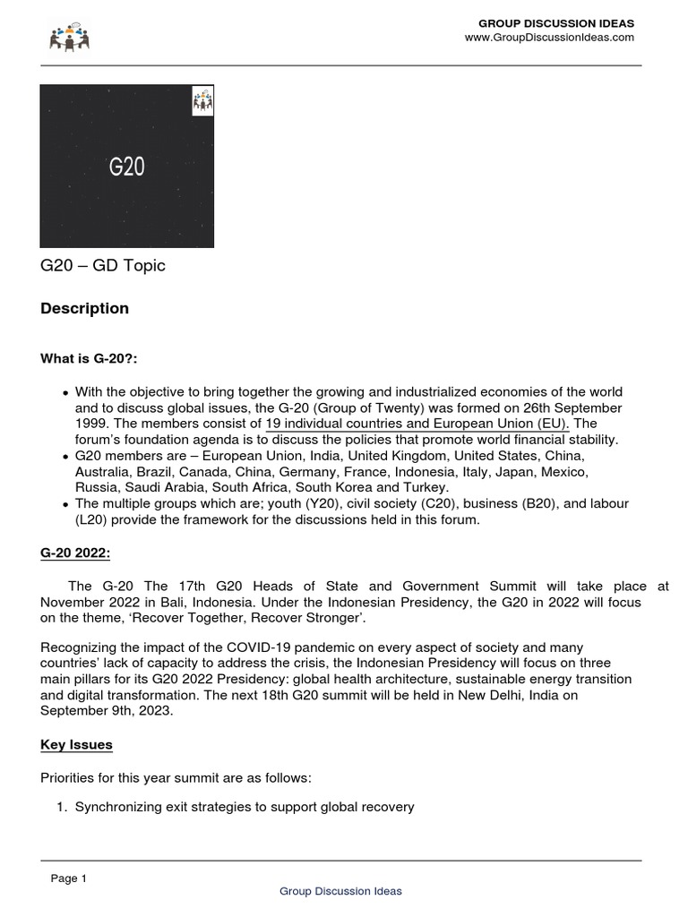 G20 - GD Topic | PDF | Global Politics | International Relations