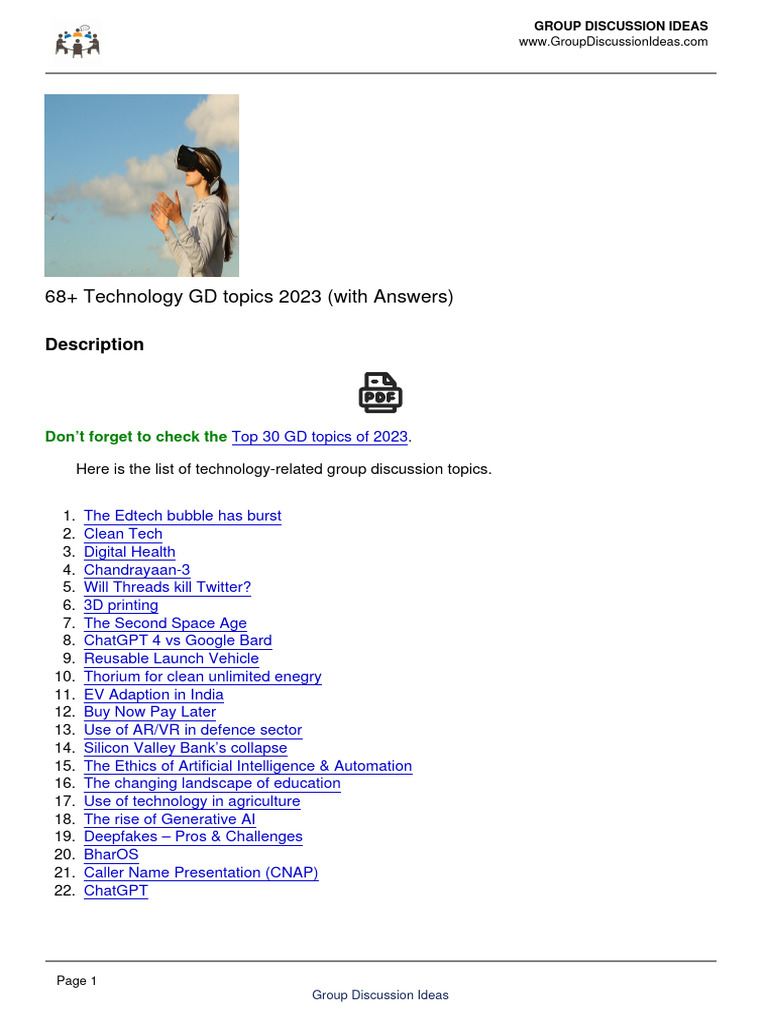 68+ Technology GD Topics 2023 (With Answers) | PDF | Artificial ...
