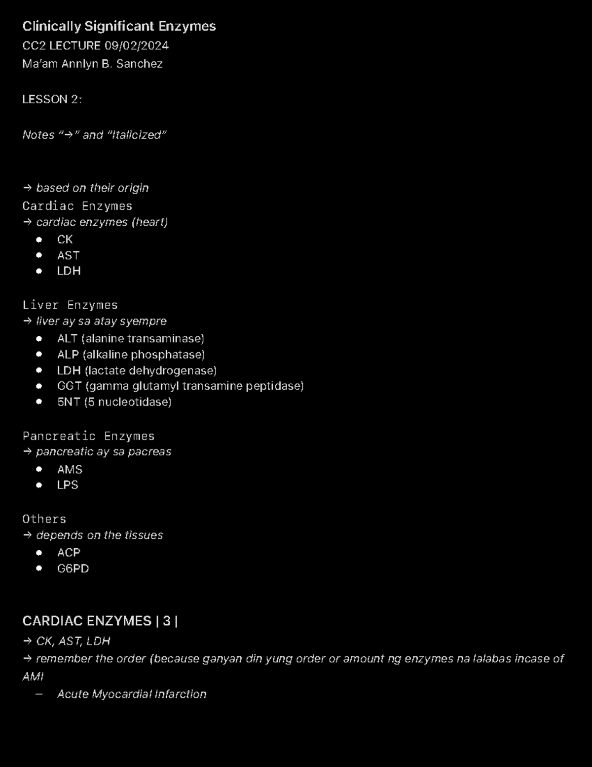 Clinically Significant Enzymes CC2 LECTURE Notes on Cardiac, Liver, and ...