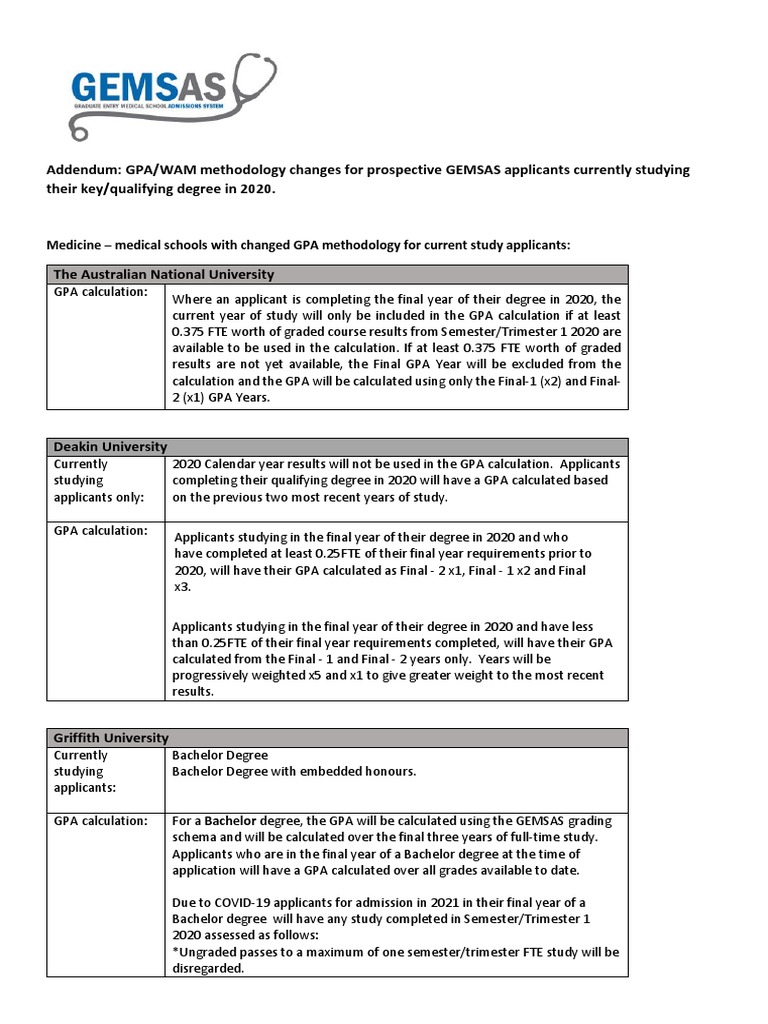 2020 GPA - Wam Change Addendum | PDF | Bachelor's Degree | Academic Degree