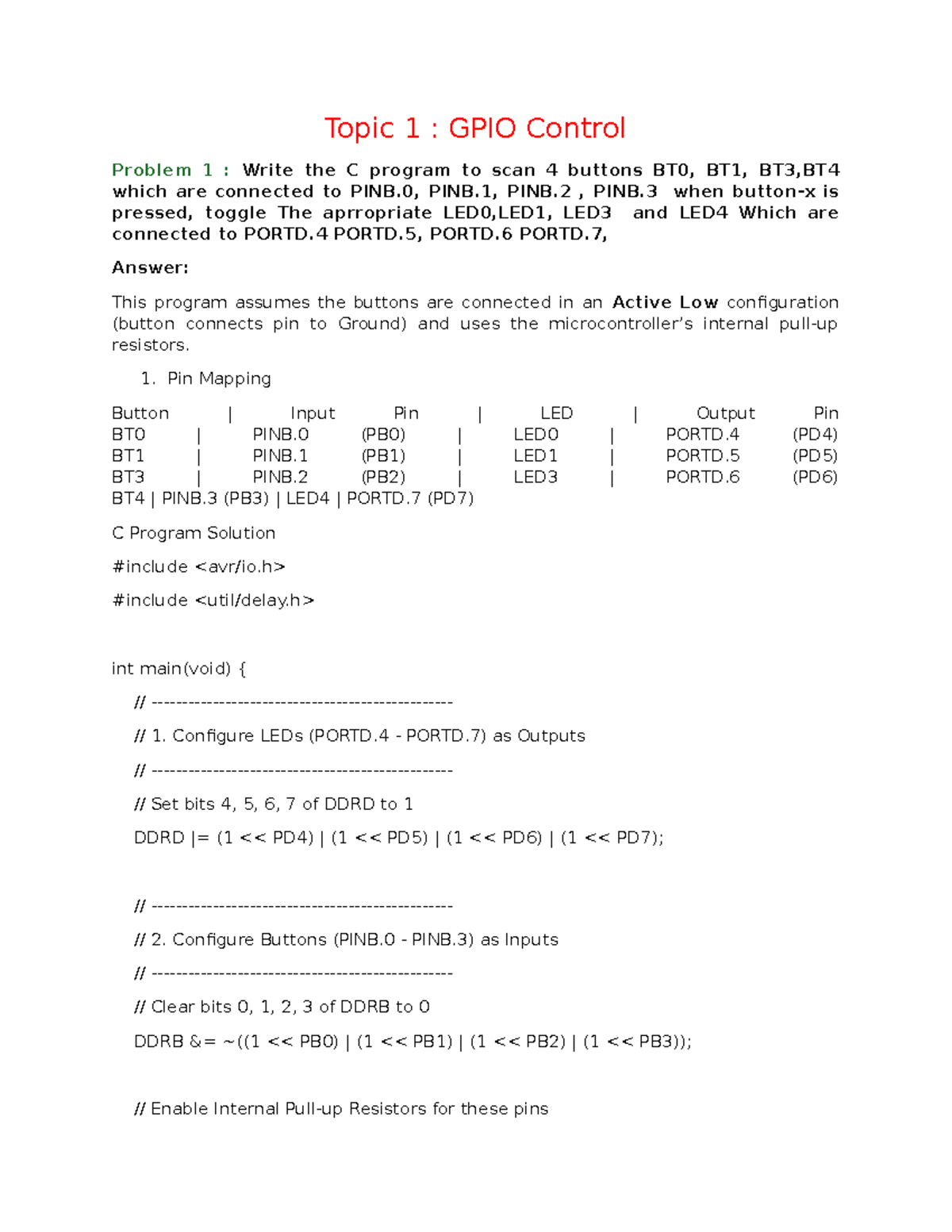 Final Exam C Programming: GPIO Control & Assembly Code (CS101) - Studocu