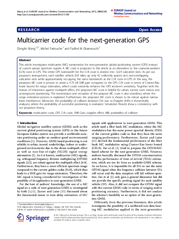 (PDF) Multicarrier code for the next-generation GPS