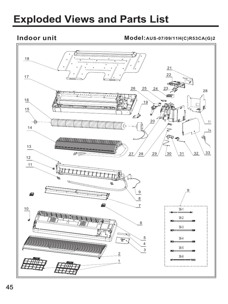 Exploded Views and Parts List: 6-1 Indoor Unit | PDF | Mechanical ...