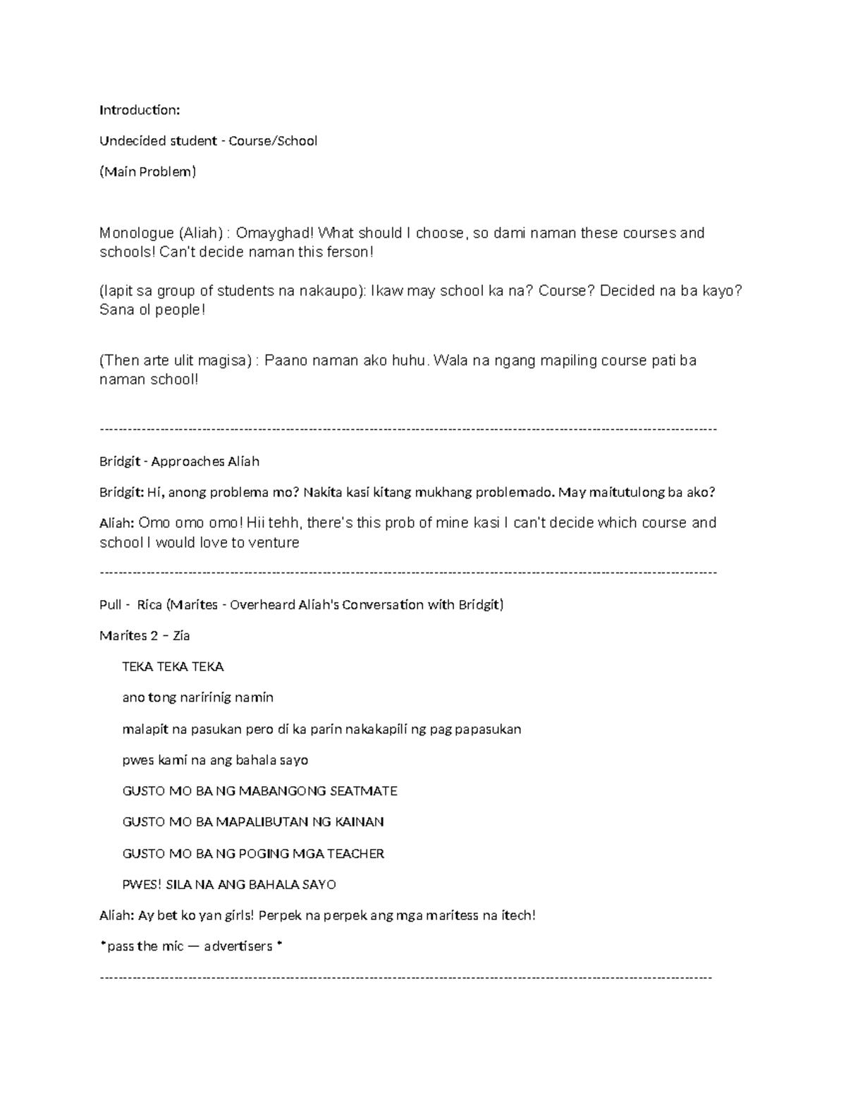 Group 2 Script: Navigating Course and School Choices - Studocu
