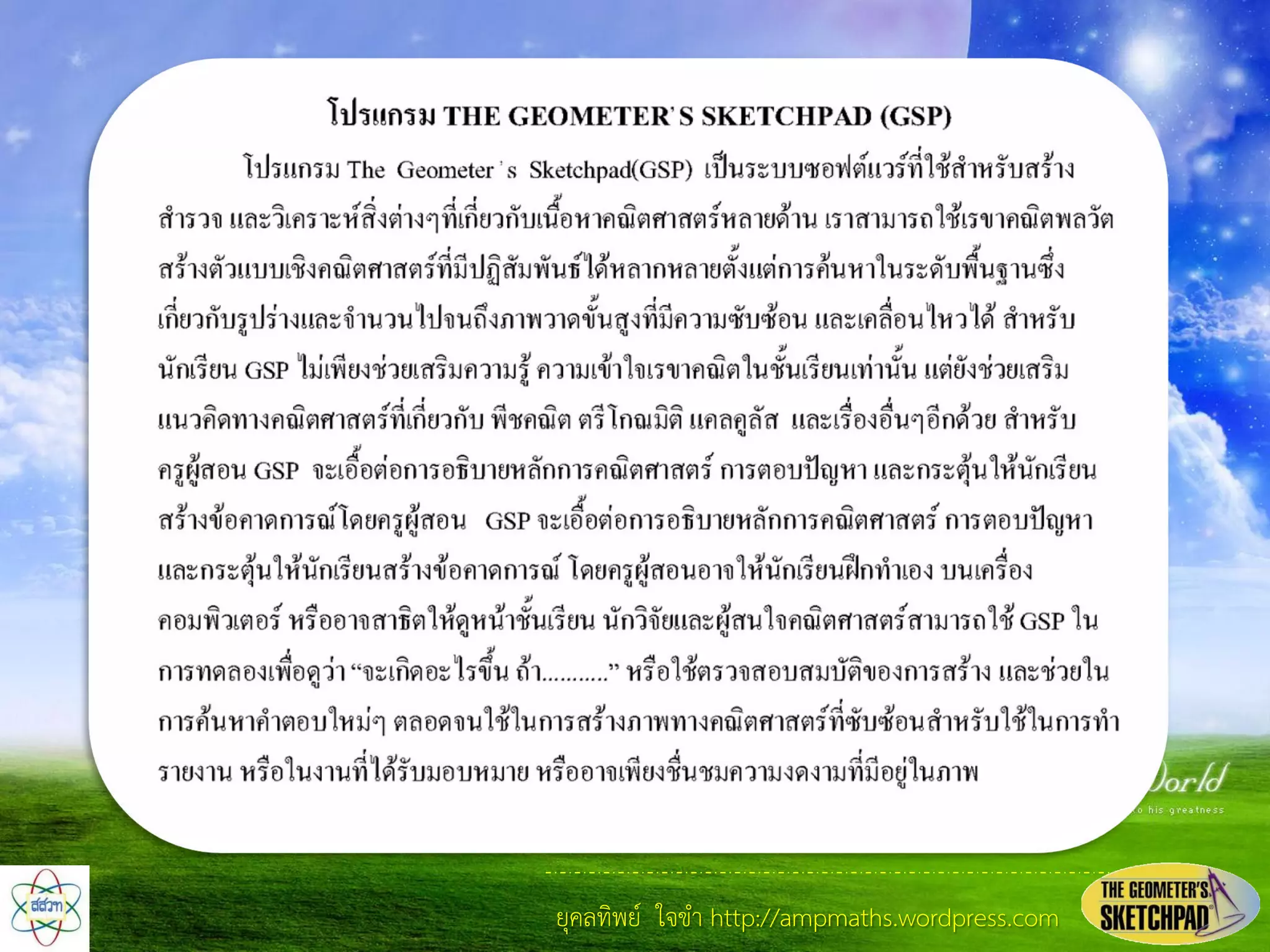 GSP Workshop : การอบรมเชิงปฏิบัติการพัฒนาทักษะทางคณิตศาสตร์ด้วยโปรแกรม ...