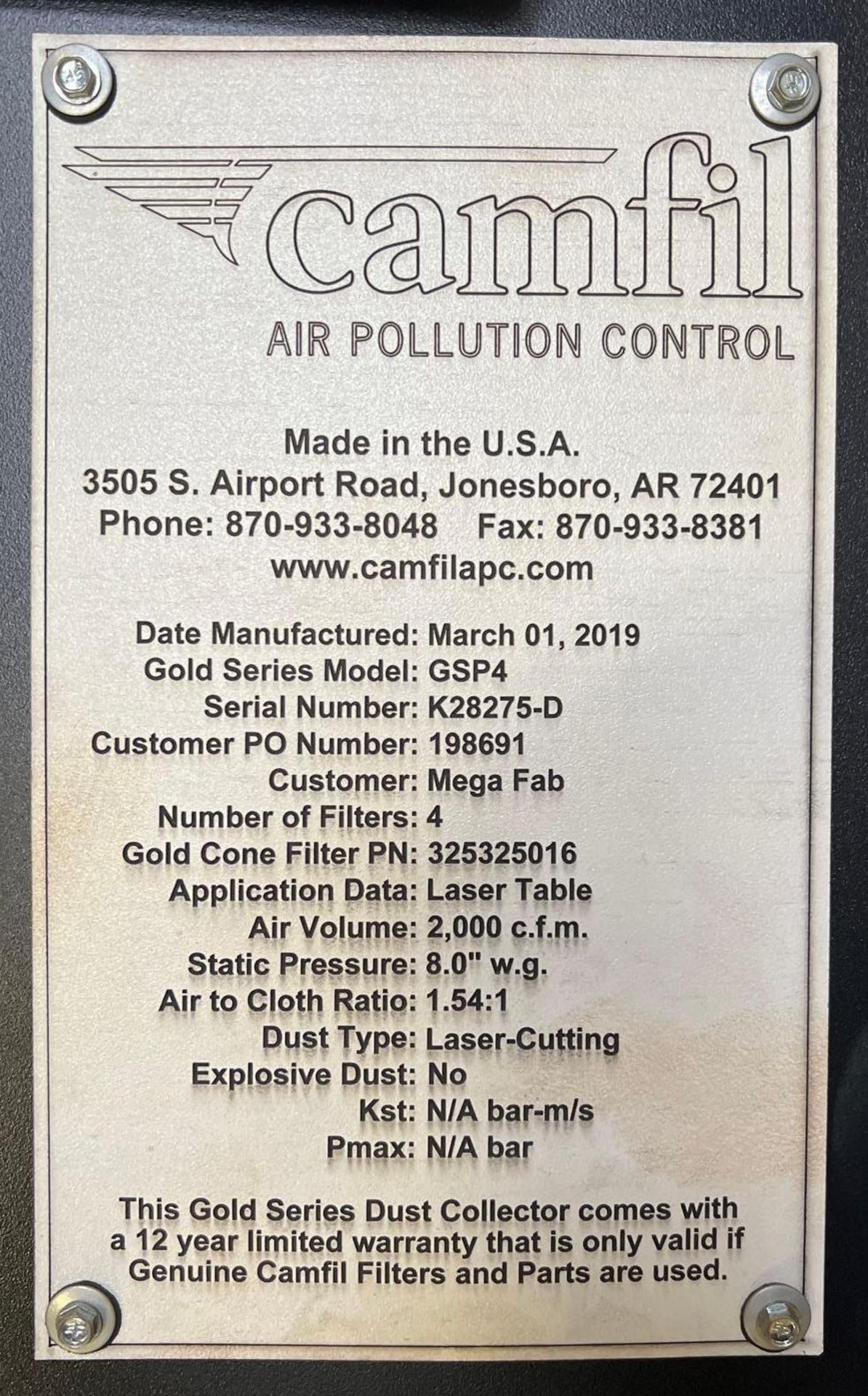 Camfil Gold Series Dust Collector Model GSP4, S/N C20537007-B, 4 ...