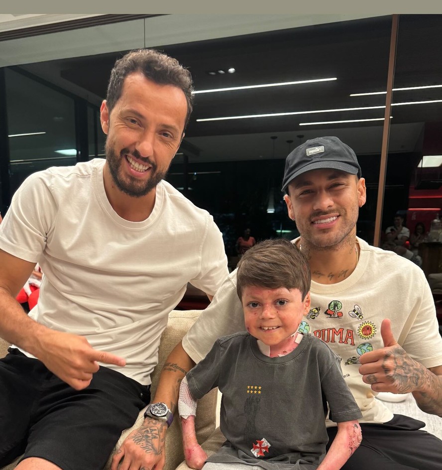 Menino Gui se encontra com Neymar e Nenê, e canta músicas de Vasco e Santos