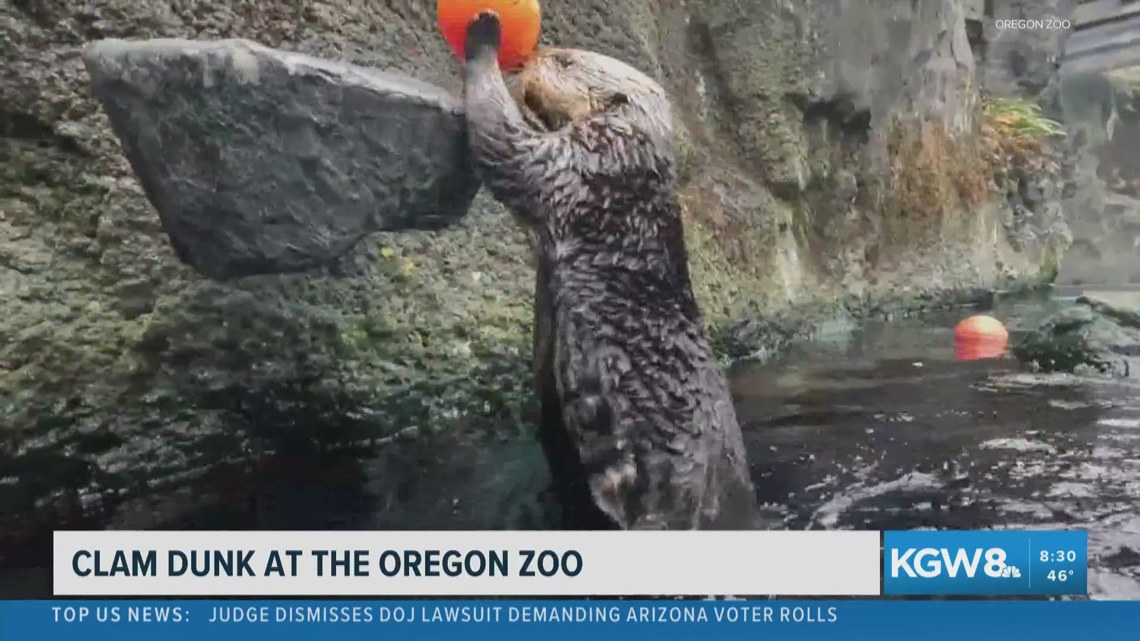 Clam dunk: Oregon Zoo otters play basketball | kgw.com