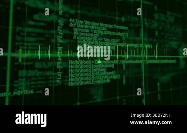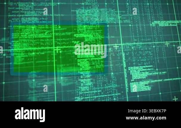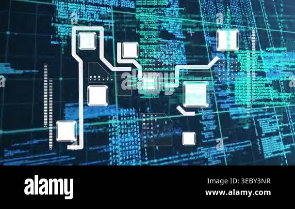 On playback starting icons shifting on 3D grid code scrolling cyan ...
