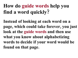 Guide Words in a Dictionary Powerpoint by Learning is Lots of Fun