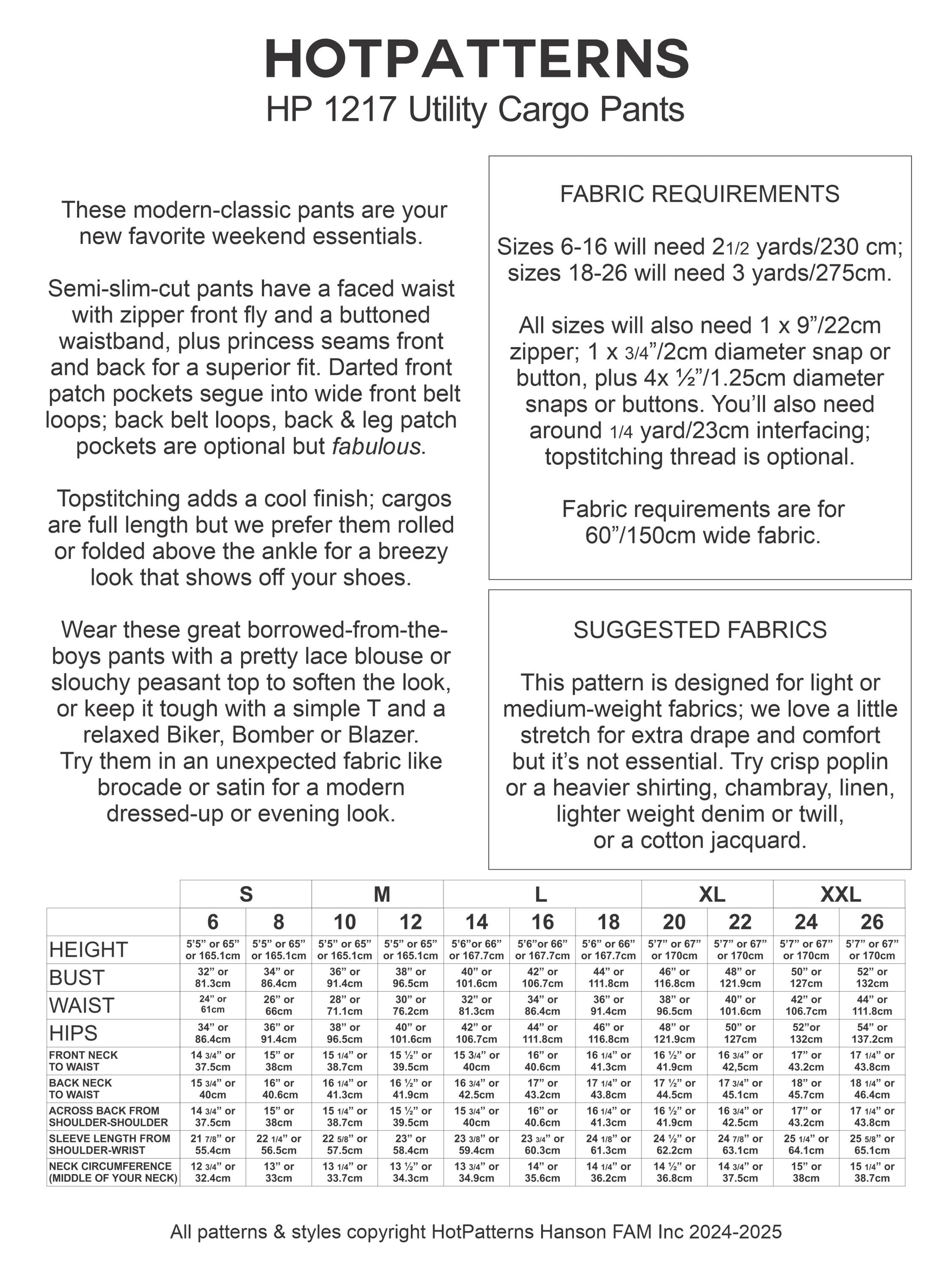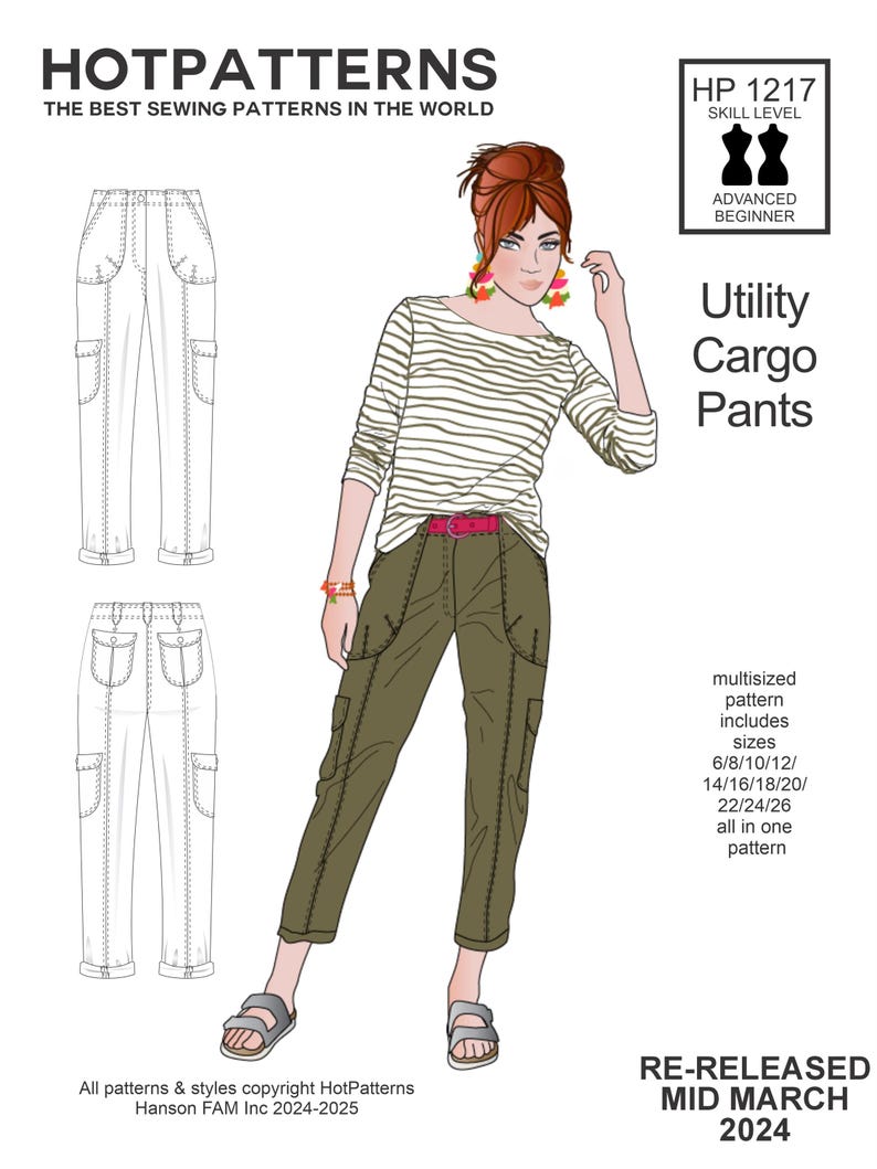 Cargo Pants PDF Sewing Pattern Two Style Options Sizes - Etsy