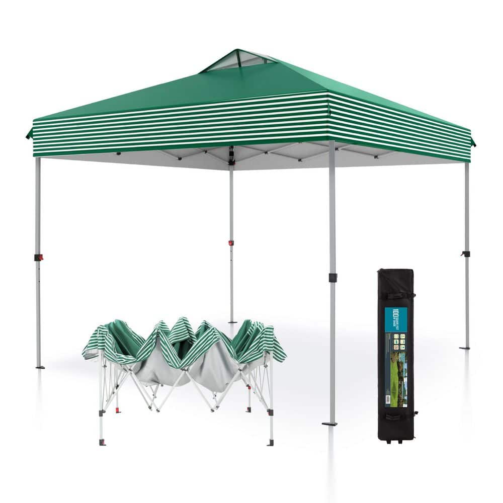 PHI VILLA 10 ft. x 10 ft. Instant Canopy Pop Up Tent in Green Stripes ...