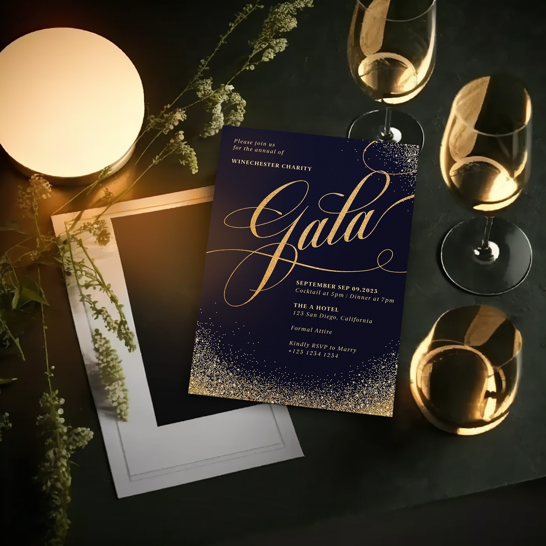 Navy & Gold Gala Invite Template, Editable and Printable Corporate ...