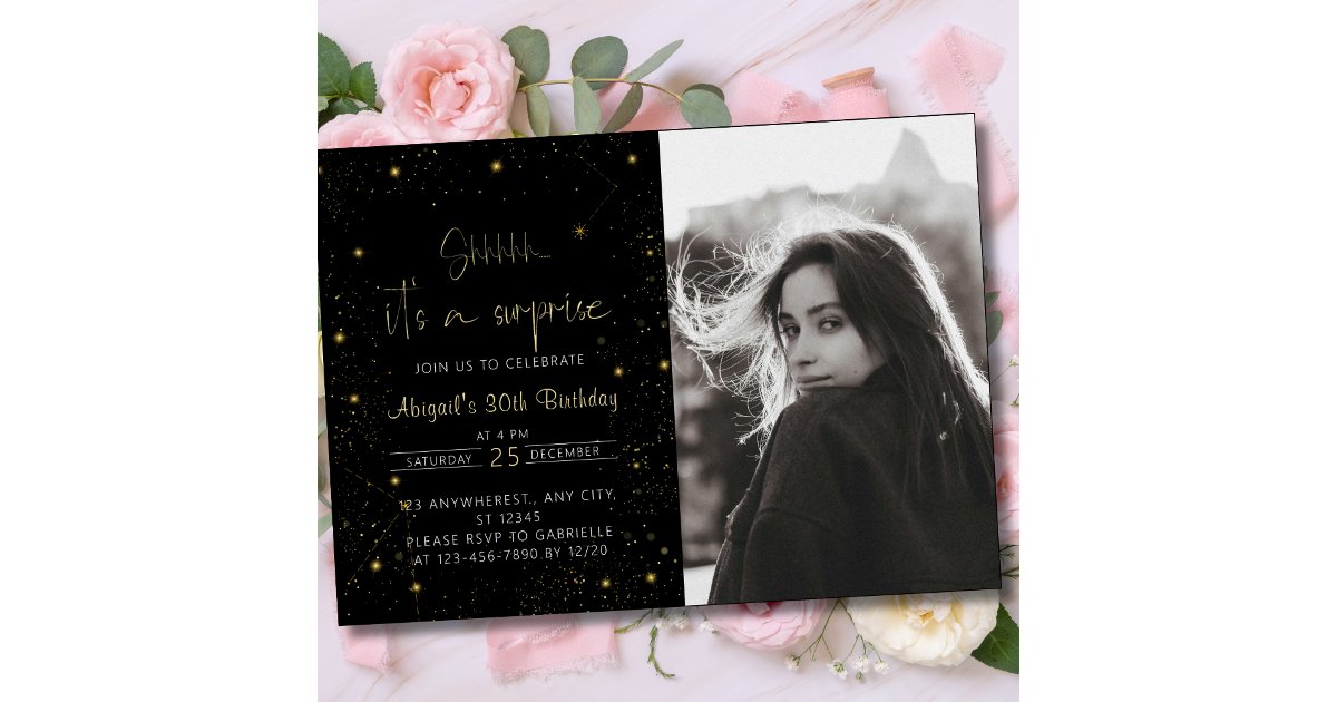Galaxy Script Photo Black and Gold Birthday Party Invitation | Zazzle