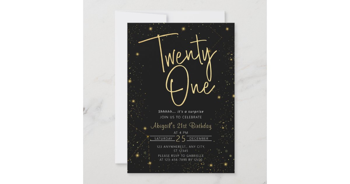 Galaxy Script Black and Gold 21st Birthday Party Invitation | Zazzle