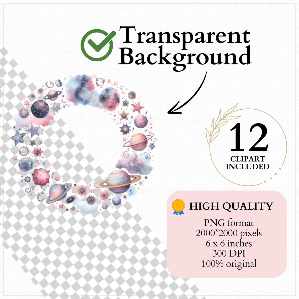 Galactic Frame Clipart, Space Planets Clipart, Solar System Art, Galaxy ...