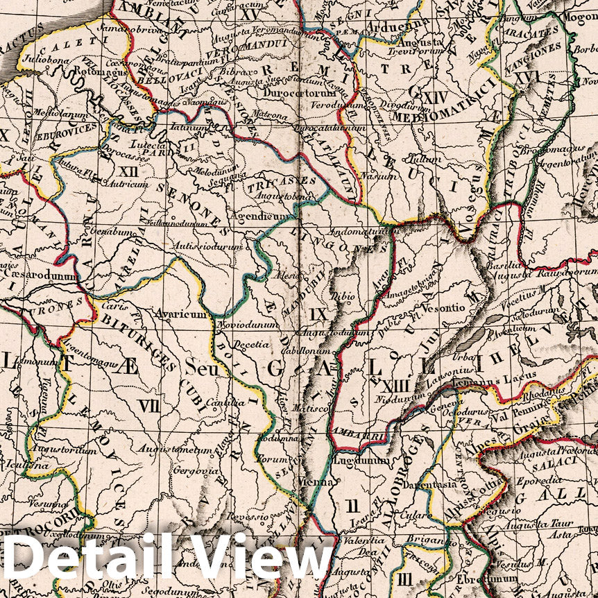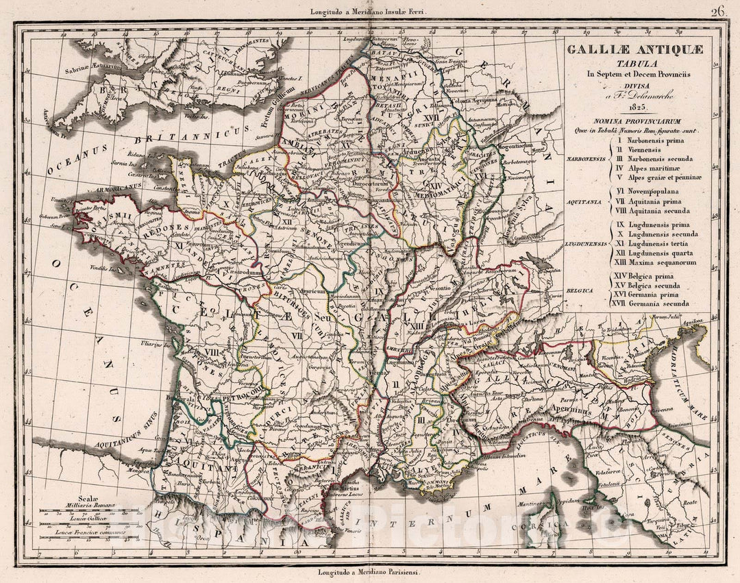 Historic Wall Map : France,Gallae Antiquae in Septem et Decem Provinci ...