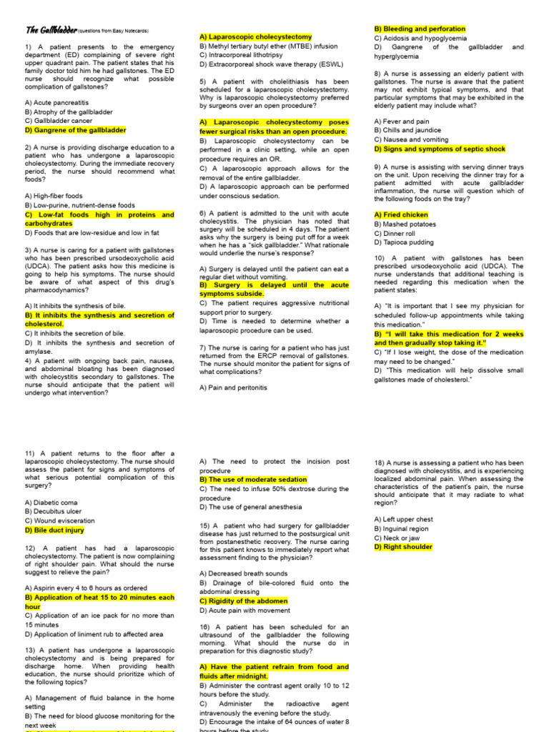 The Gallbladder (Questions Sample) | PDF | Gallbladder | Clinical Medicine