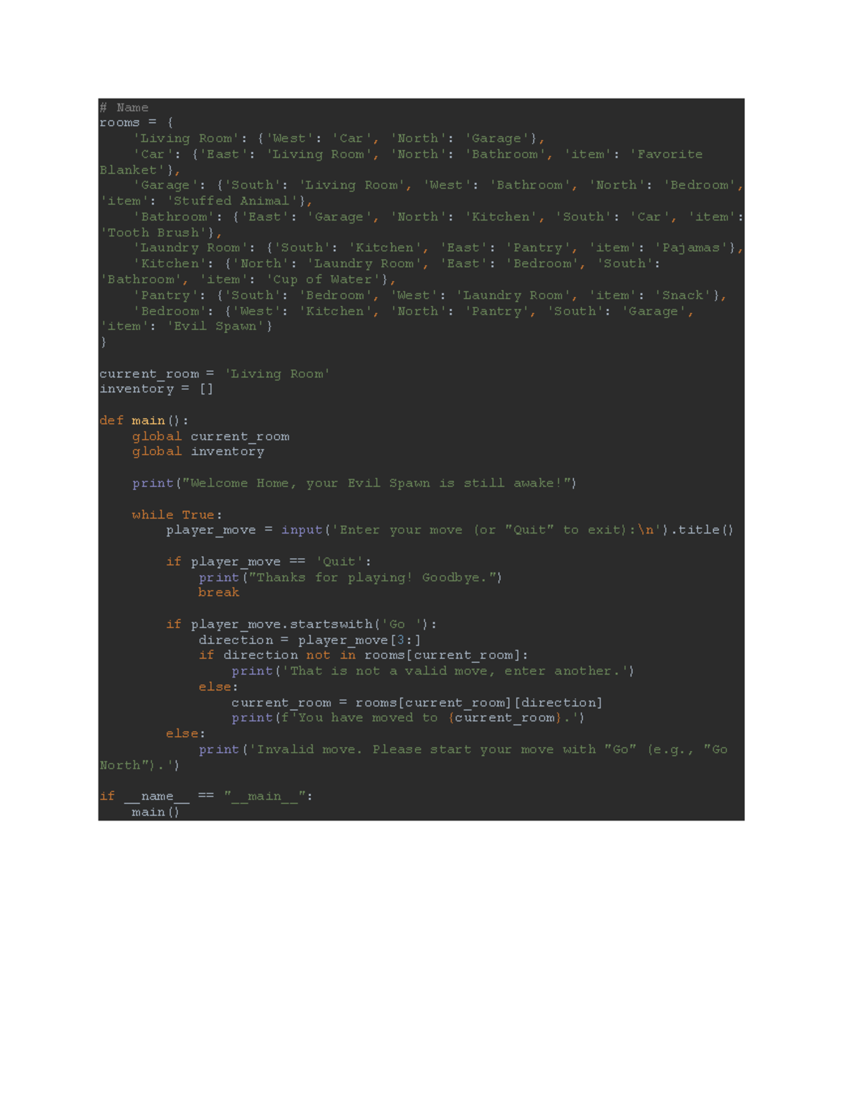 Text Game Working Code - Name rooms = { 'Living Room': {'West': 'Car ...