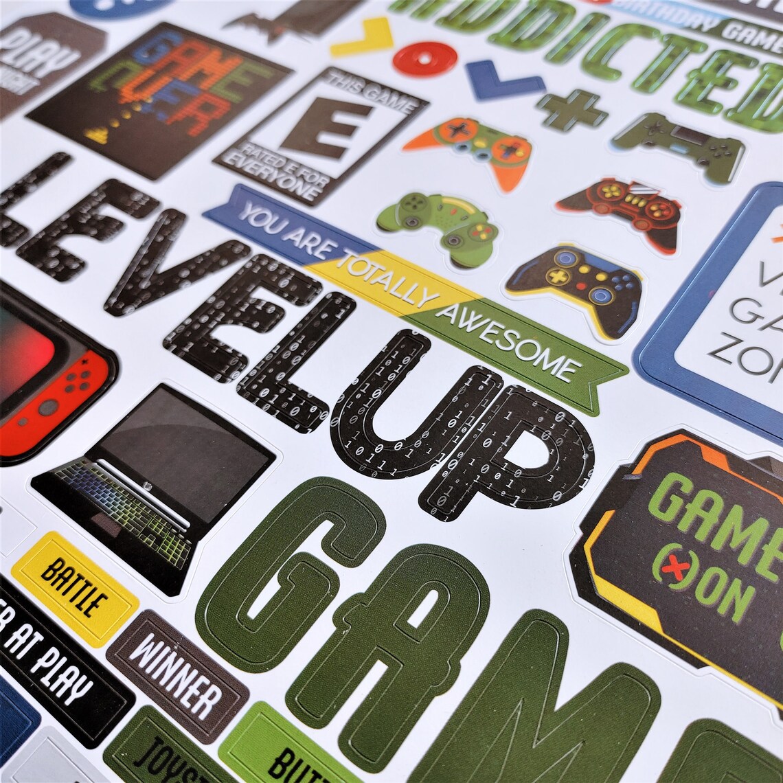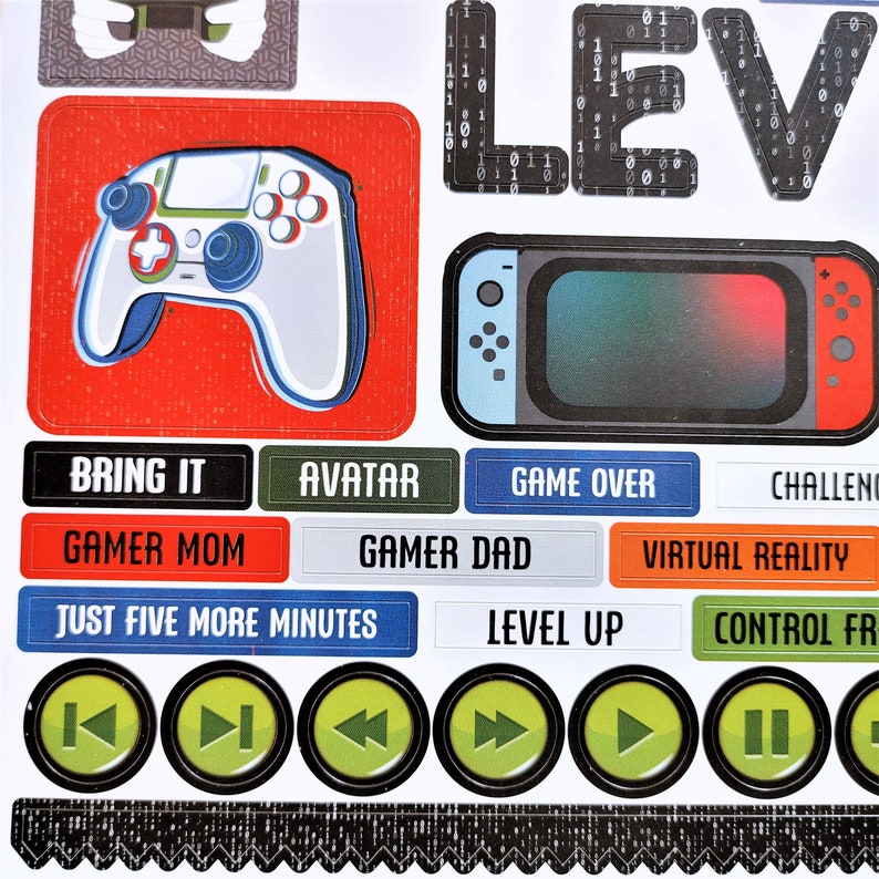 Gamer Stickers, 12" Cardstock Sticker Sheets, Scrapbook Stickers, Video ...