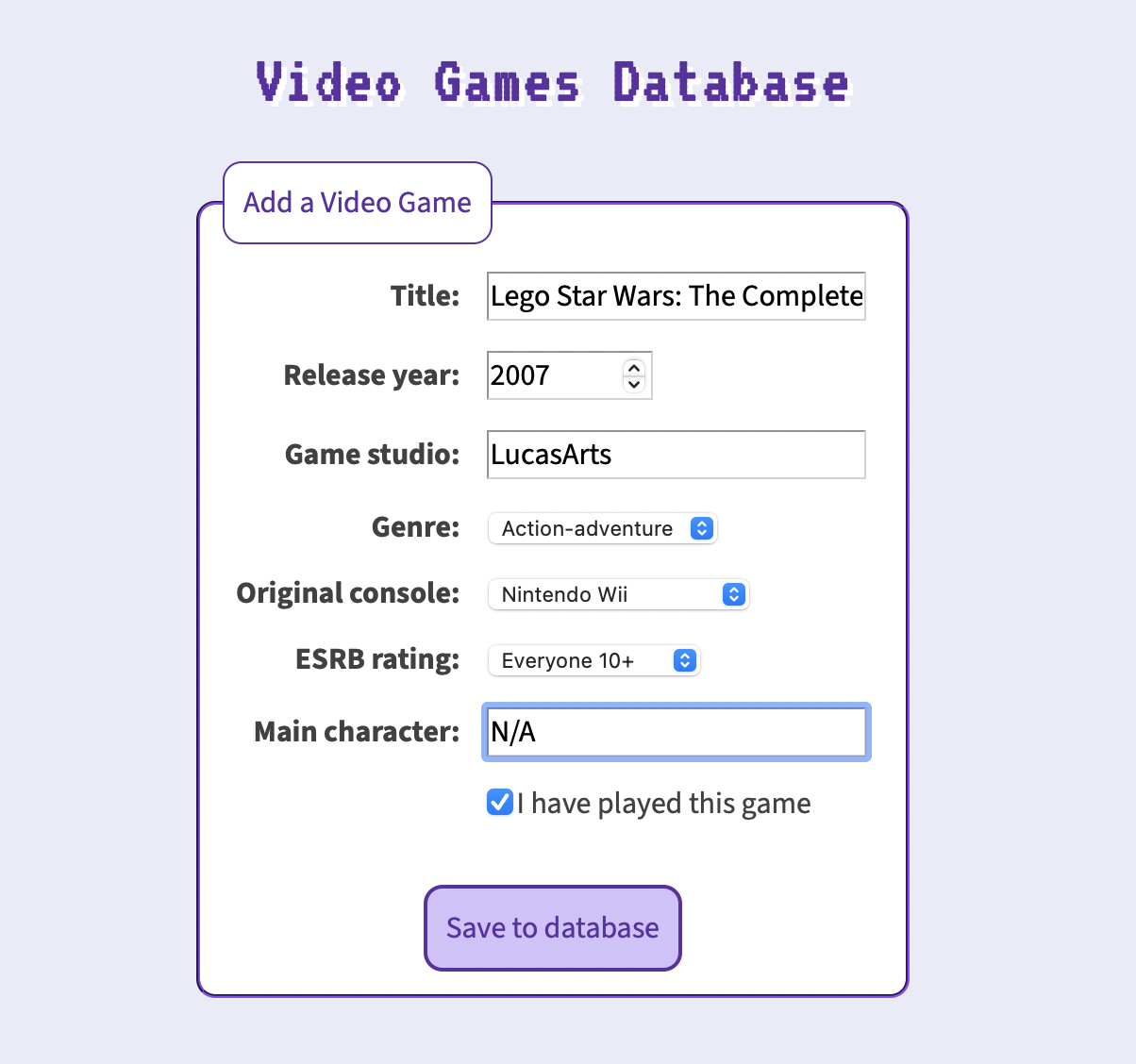 GitHub - kaklein/video-games-database: Dynamic web application using ...