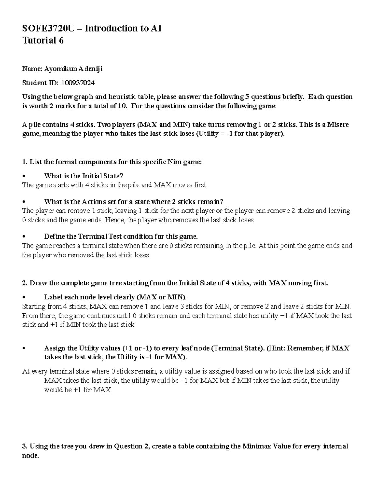 SOFE3720U Intro to AI - Tutorial 6: Misere Game Analysis - Studocu