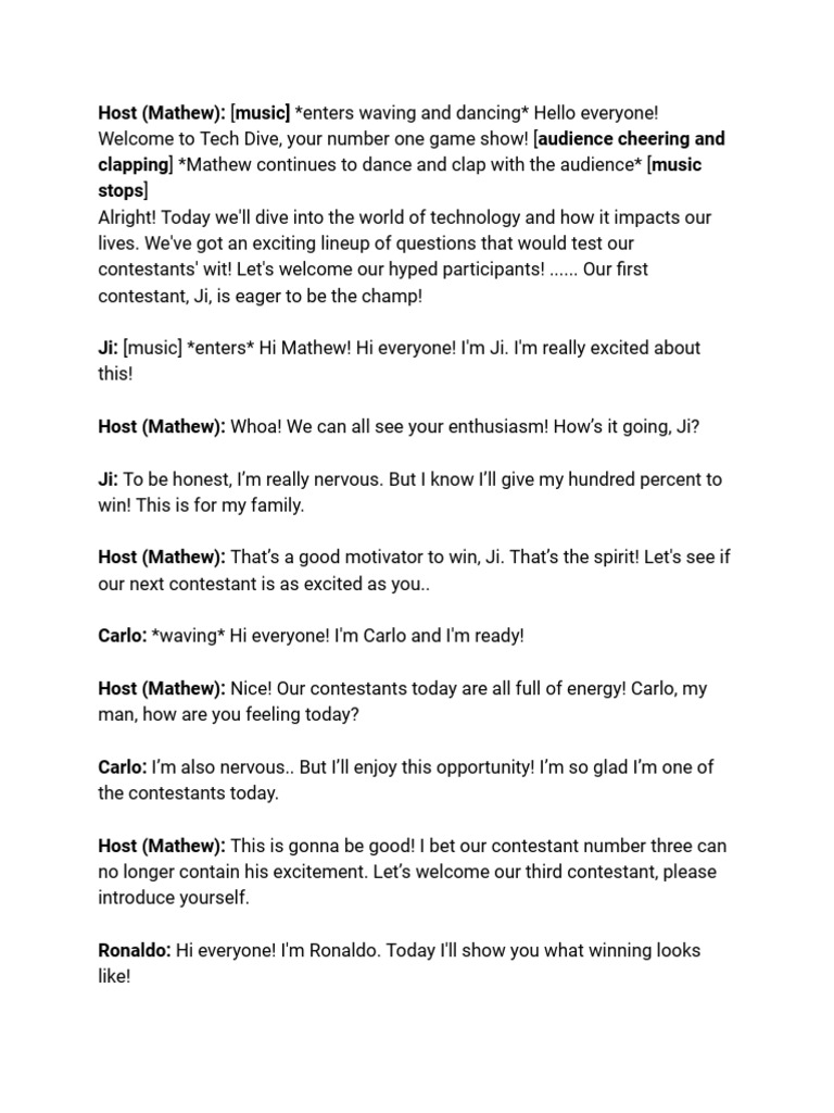 Script for Comedy Variety Show - Scene 1: Game Show (TagisTalino) Host ...