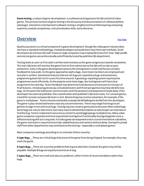 Game Testing Methodology | PDF | Software Testing | Software Bug