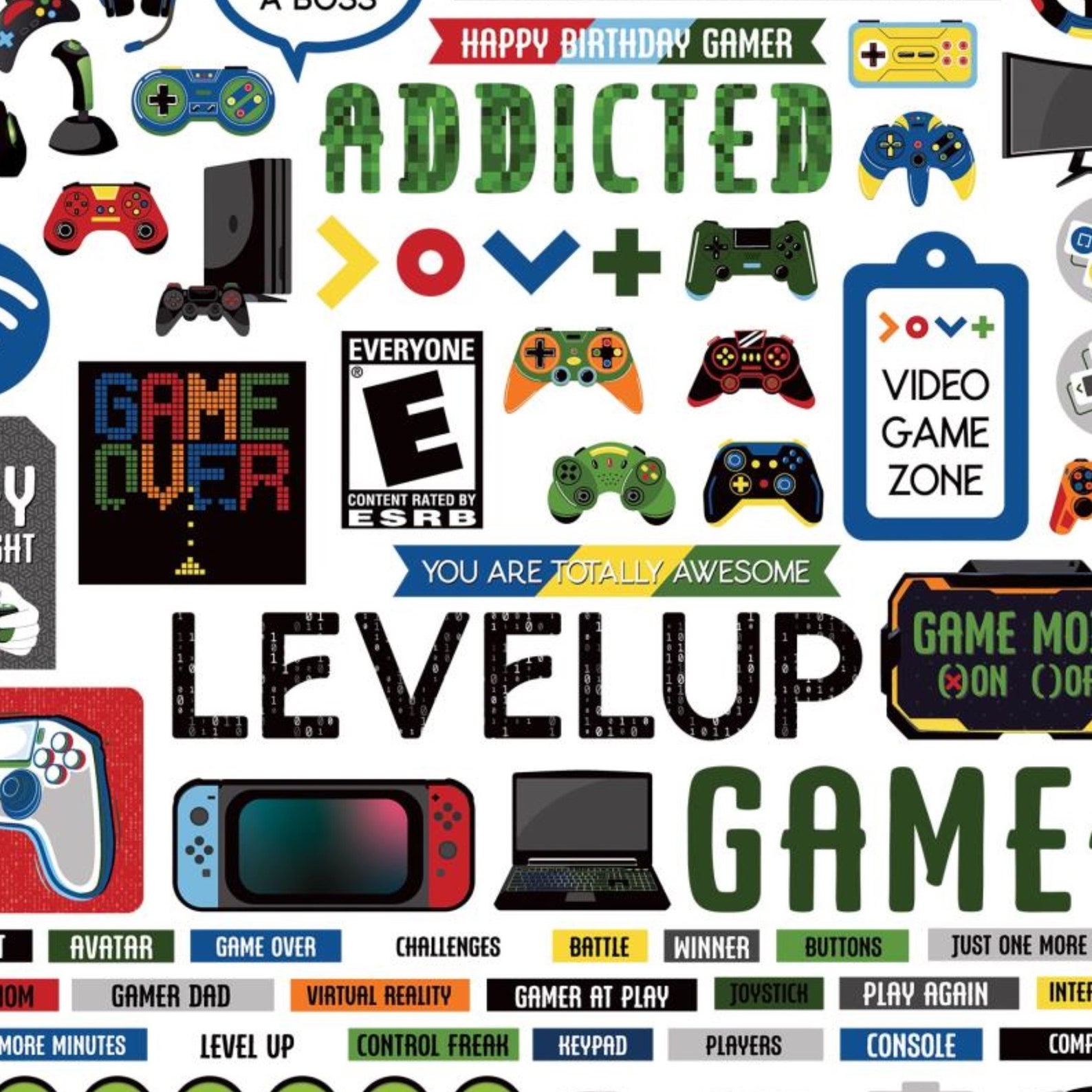 Gamer Stickers, 12x12 Sticker, Scrapbook Stickers, Video Game Stickers ...