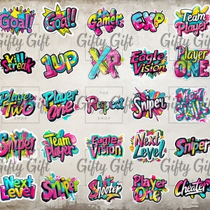 Videogame Gaming Text Sticker Designs Midjourney Prompt | PromptBase