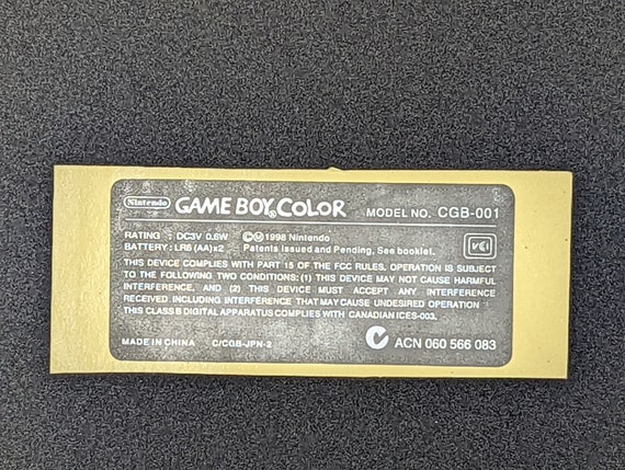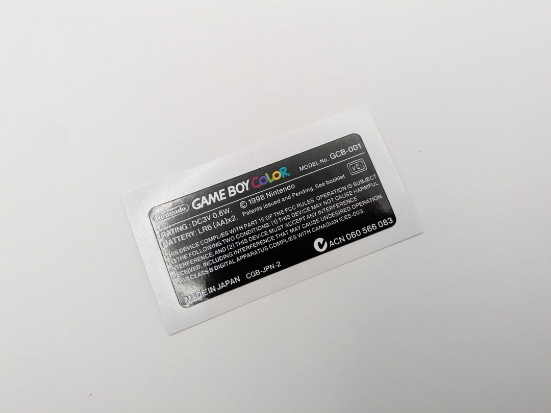 Gameboy Color Replacement Information Sticker | Etsy