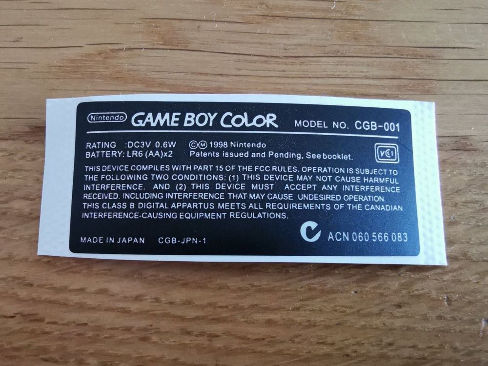 Replacement OEM Stickers For Nintendo Gameboy Color Service Label ...