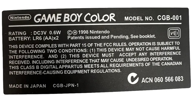 Replacement Gameboy Color Console Back Information Stickers Nintendo ...
