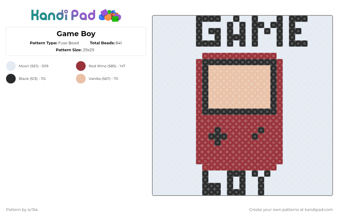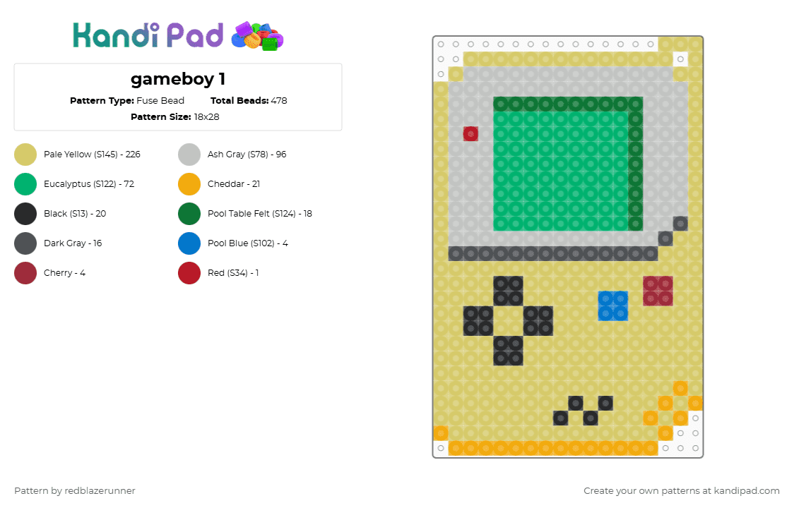 Game Boy Fuse Bead Pattern - Kandi Pad | Kandi Patterns, Fuse Bead ...