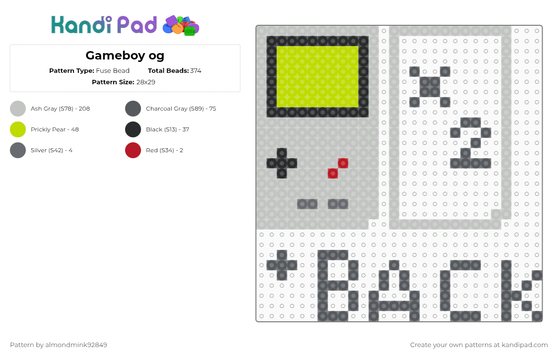 Gameboy console Fuse Bead Pattern - Kandi Pad | Kandi Patterns, Fuse ...