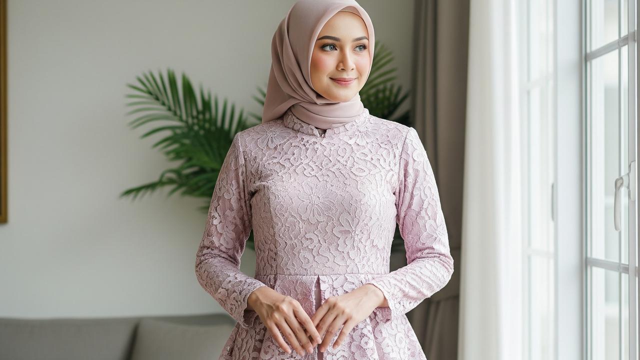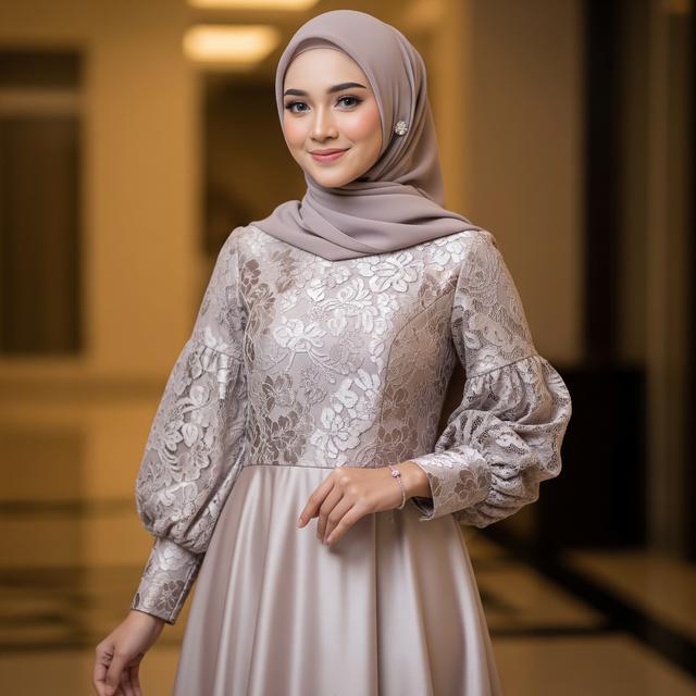 7 Model Gamis Terbaru Brokat Kombinasi Satin, Sentuhan Modern yang ...