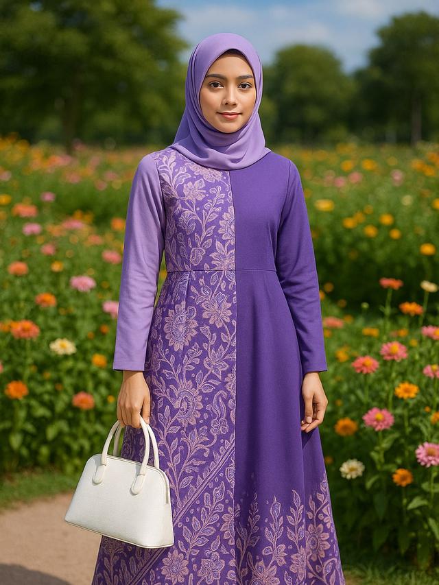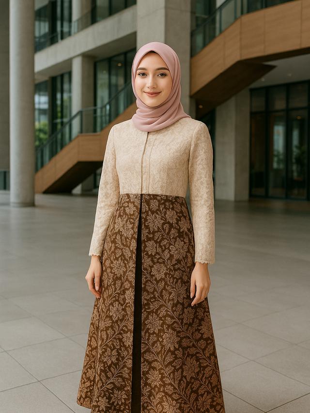 Tampilan etnik model gamis batik kombinasi modern terbaru 2026