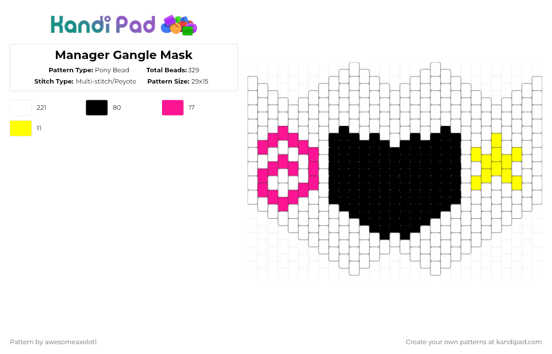 Manager Gangle Mask Pony Bead Pattern - Kandi Pad | Kandi Patterns ...