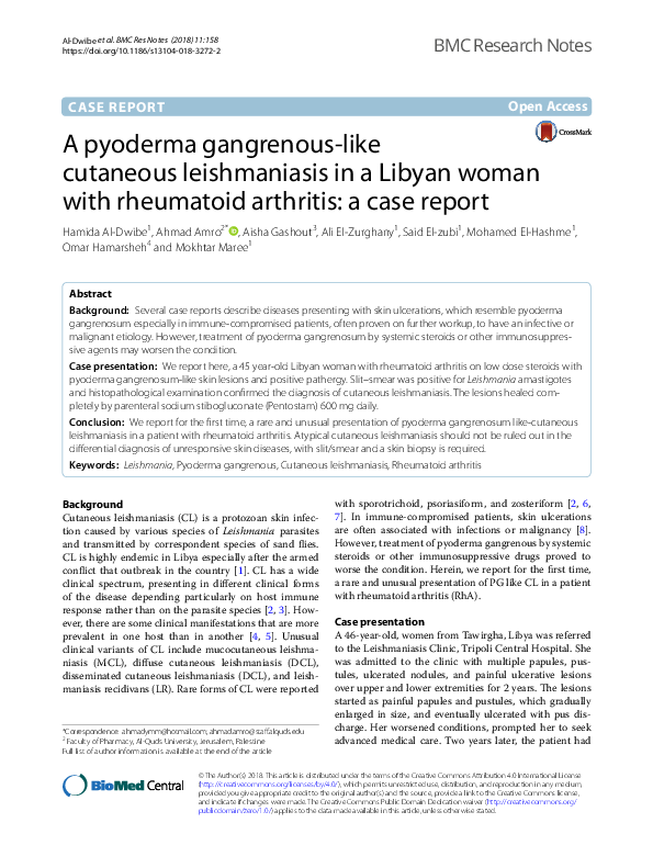 (PDF) A pyoderma gangrenous-like cutaneous leishmaniasis in a Libyan ...