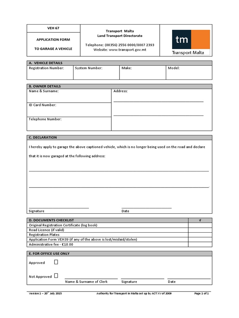 Veh 67 - Application Form To Garage A Vehicle | PDF