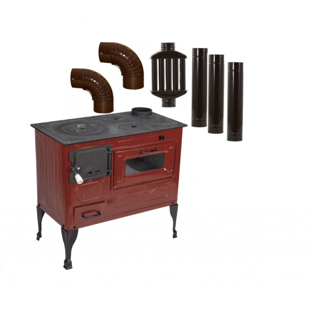 Soba pe lemne cu plita si cuptor, maro,cos dreapta 3 Burlane ...