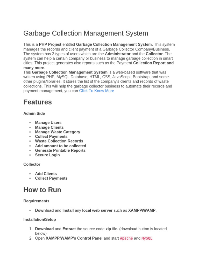 Garbage Collection Management System: Features | PDF