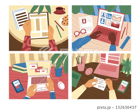 Computer screen. Hands typing on keyboard....のイラスト素材 [132636437] - PIXTA