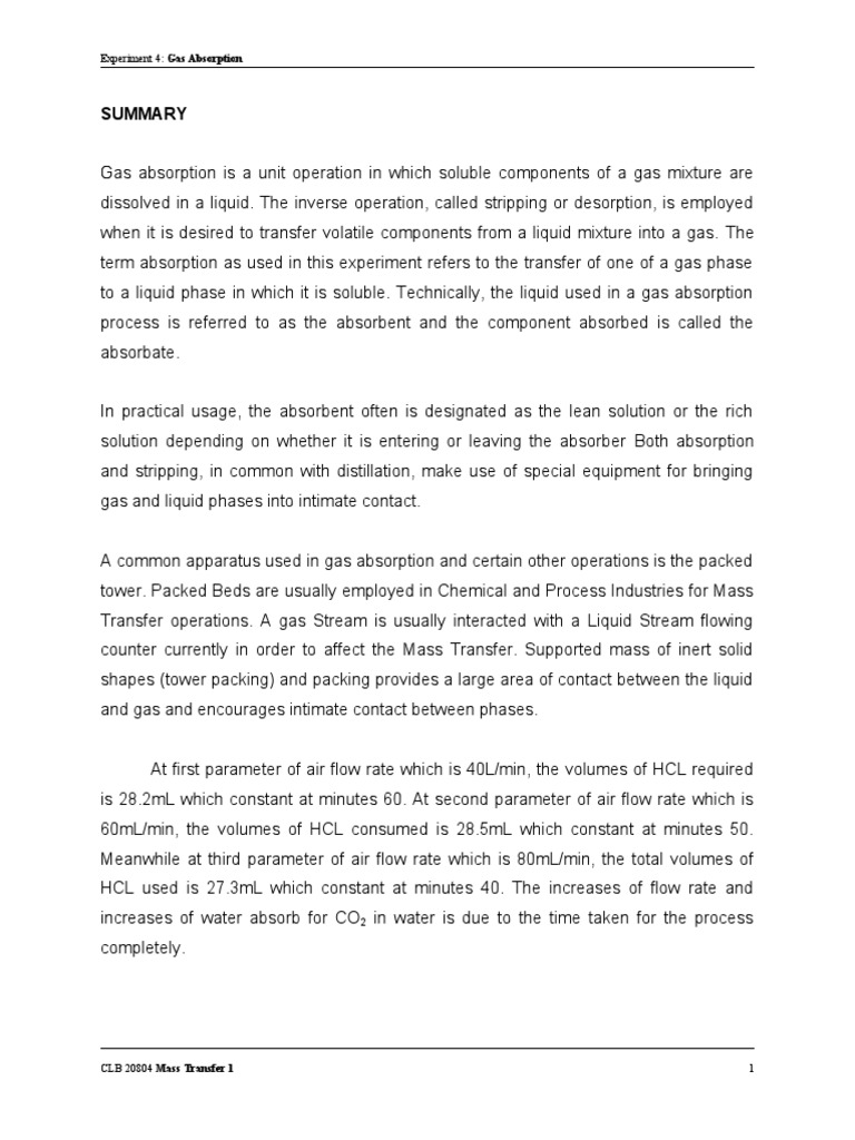Experiment 4: Gas Absorption | PDF | Absorption (Chemistry) | Carbon ...