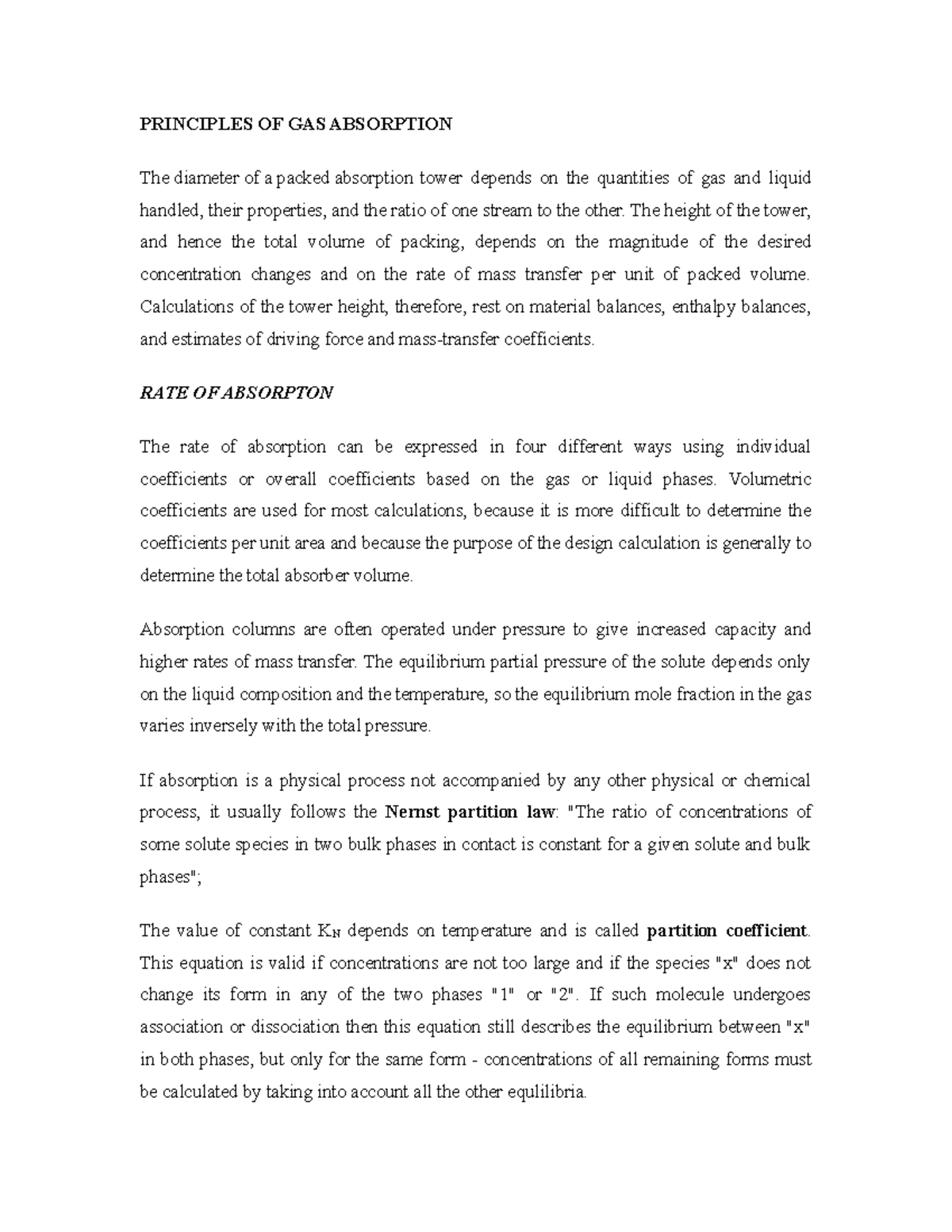 Principles of Gas Absorption - PRINCIPLES OF GAS ABSORPTION The ...