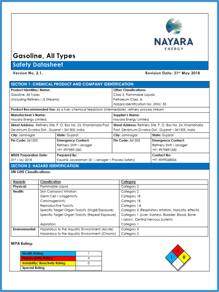 Gasoline Hazard Rating and Shipping Classification Labels - Brady Part ...